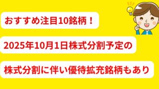 その他 2025年10月1日株式分割予定の注目10銘柄|株主優待・配当まとめ 2025年10月1日に株式分割を予定している注目10銘柄を紹介!ニトリ、ドン・キホーテ、第四北越FGなどの株主優待や配当利回りをわかりやすく解説。株式分割後に手が届きやすくなる銘柄もチェックできます。 2025.10.02 その他