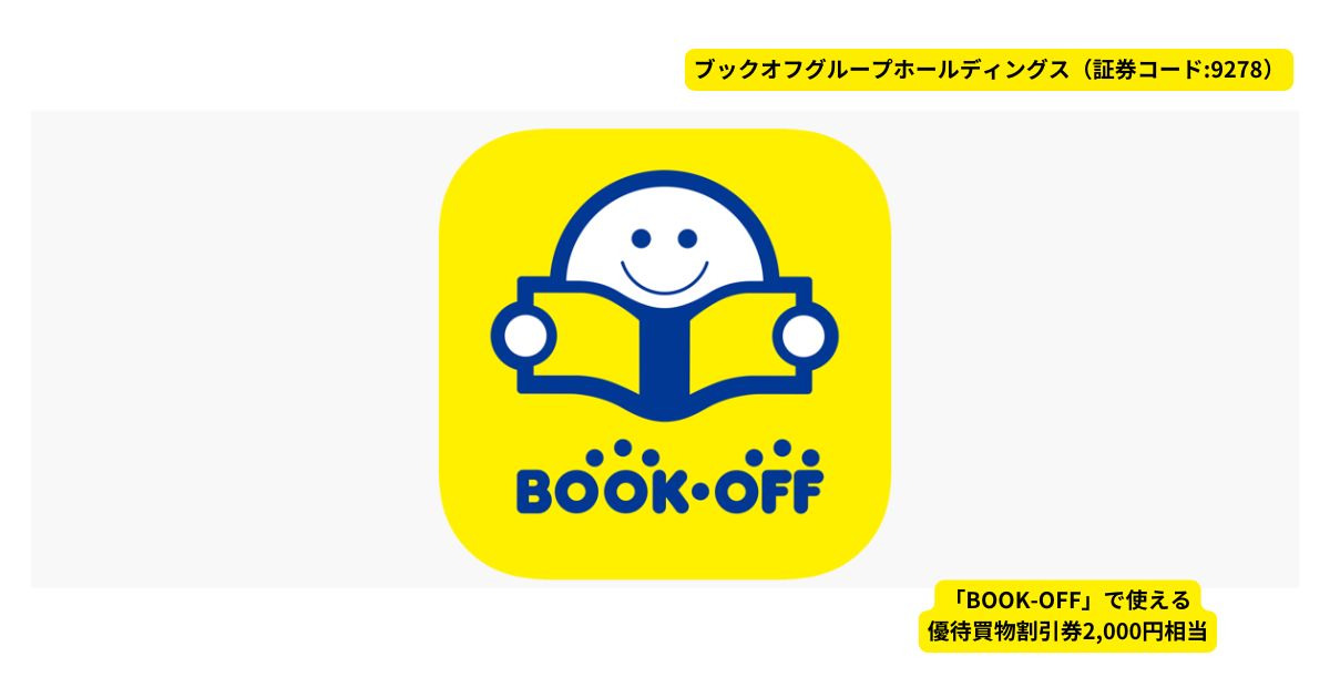 | 優待内容 | 「BOOK-OFF」で使える優待買物割引券年間2,000円分(保有株数・期間に応じて増加) |