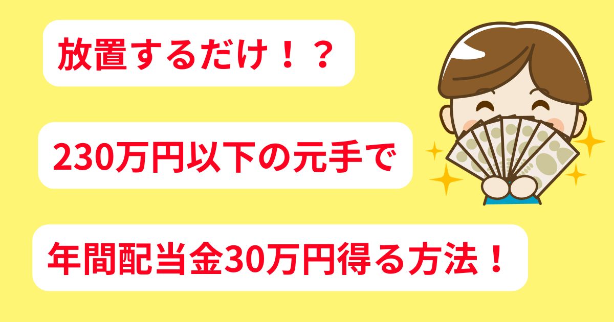 今回は、元手230万円以下で年間30万円の配当金をもらう方法についてお話していきます。