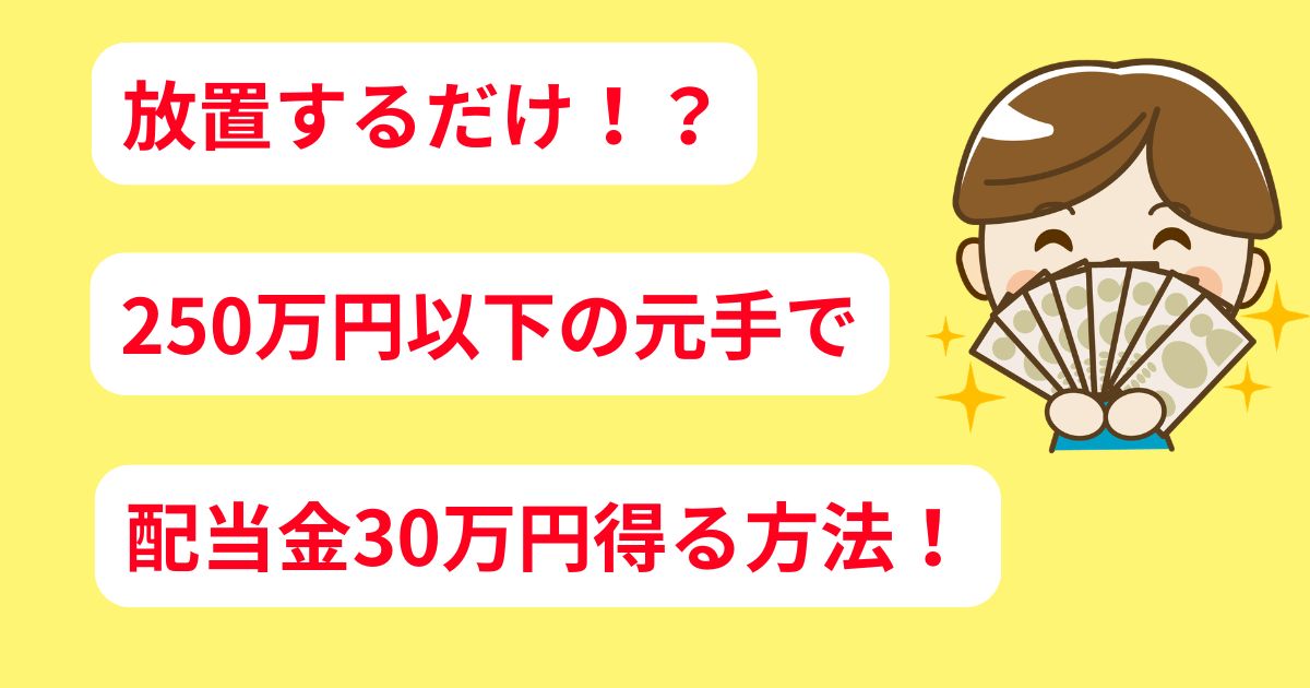 今回は、元手250万円以下で年間30万円の配当金をもらう方法についてお話していきます。