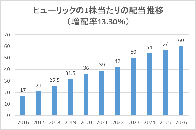 ヒューリックの過去10年間平均の増配率は17.15%です。(増配率とは?)