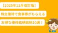 100株保有で年間8枚(=16個分)のギフト券がもらえるのは、日常でも使いやすく、満足度の高い内容です。