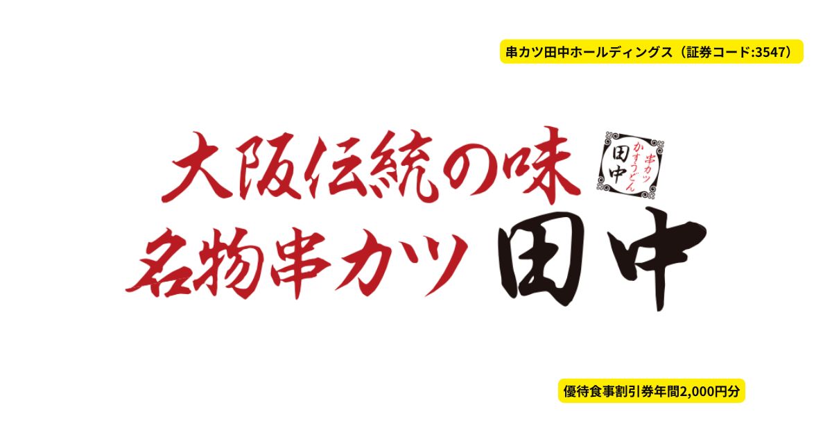 今回紹介する株主優待は、串カツ田中ホールディングス(証券コード:3547)です。