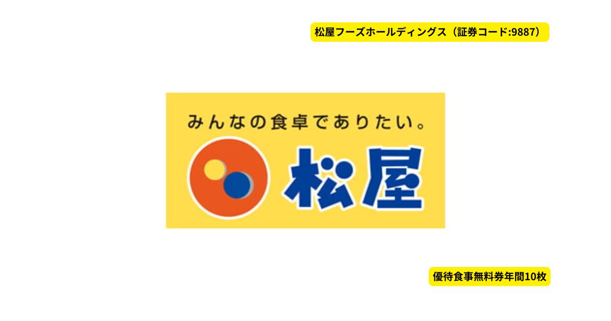 株主優待内容は、100株を1年以上の保有で「松屋」のなどのグループ店舗で使える優待食事無料券年間10枚もらえます。