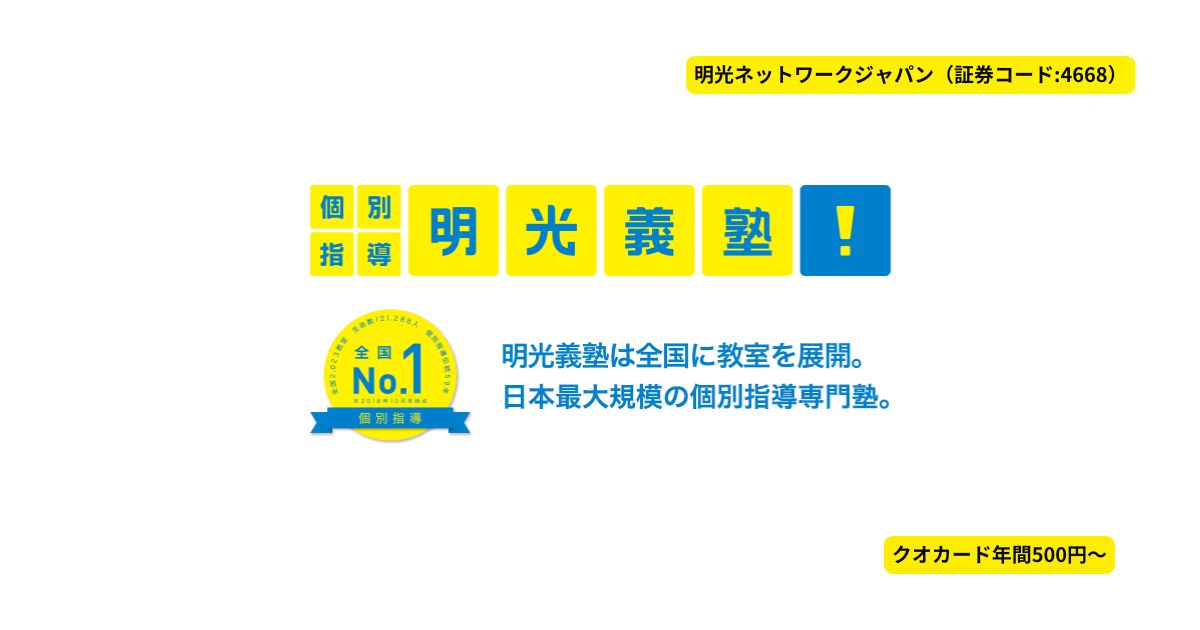 今回紹介する株主優待は、明光ネットワークジャパン(証券コード:4668)です。