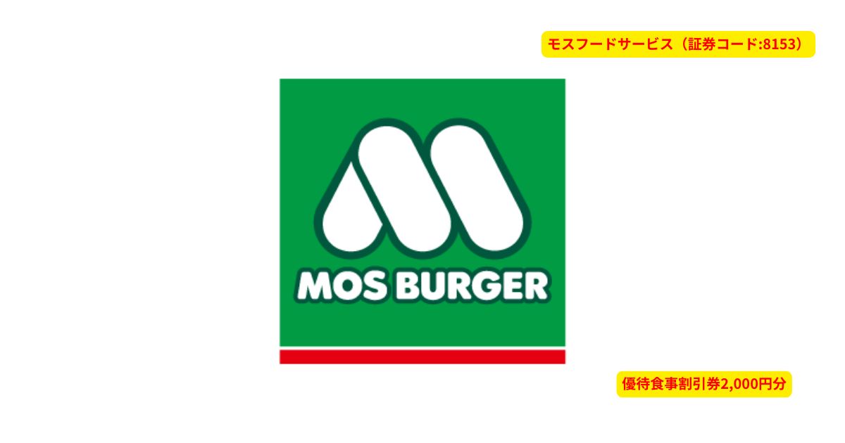 | 優待内容 | モスバーガーで使える年間2,000円分の優待食事割引券 |