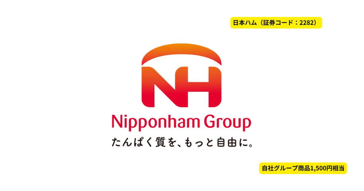 株主優待内容は、100株保有で1,500円相当の自社グループ商品(ハム、ソーセージなど)がもらえます。