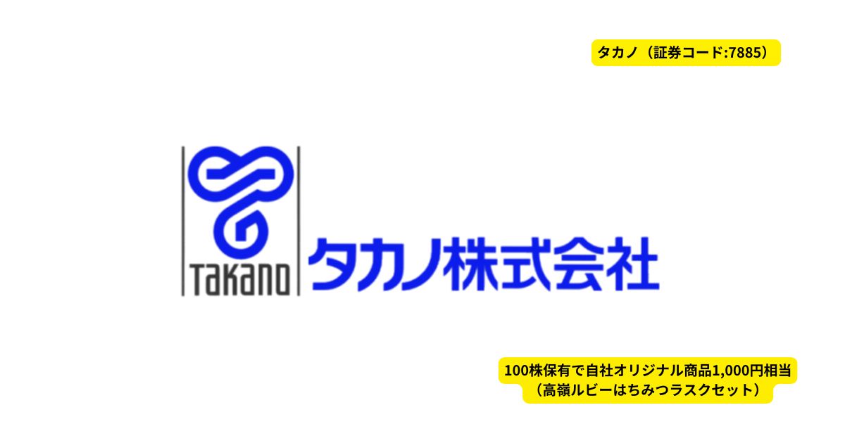 今回紹介する株主優待は、タカノ(証券コード:7885)です。