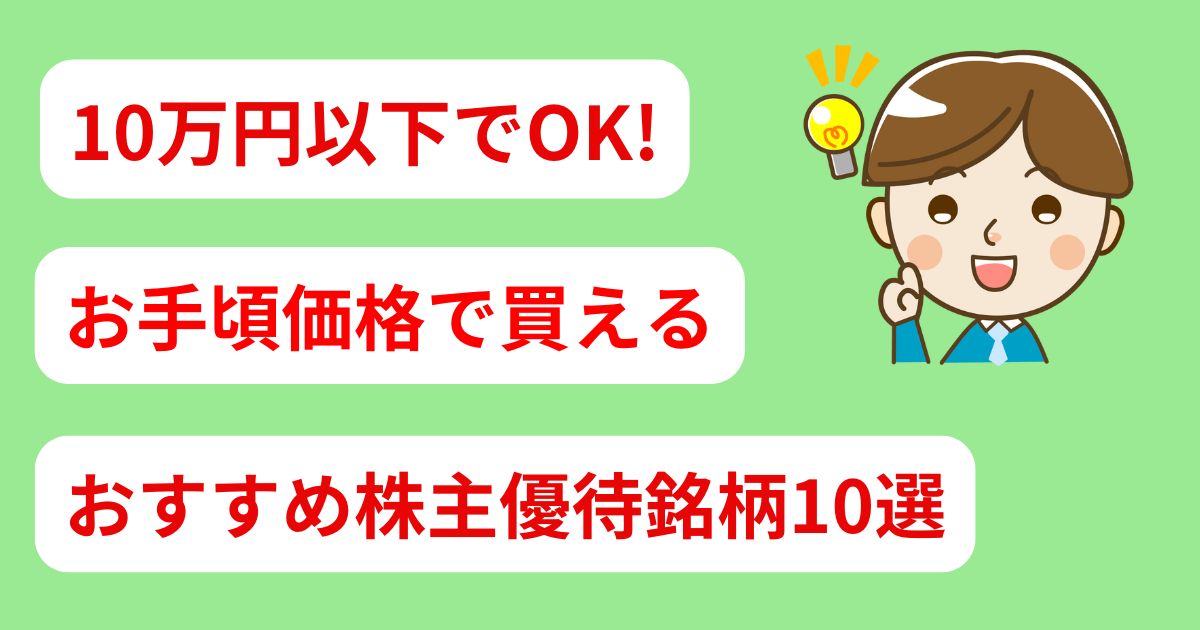 今回は10万円以下(1株当たり1,000円以下)で買えるおすすめ株主優待10銘柄を紹介します。