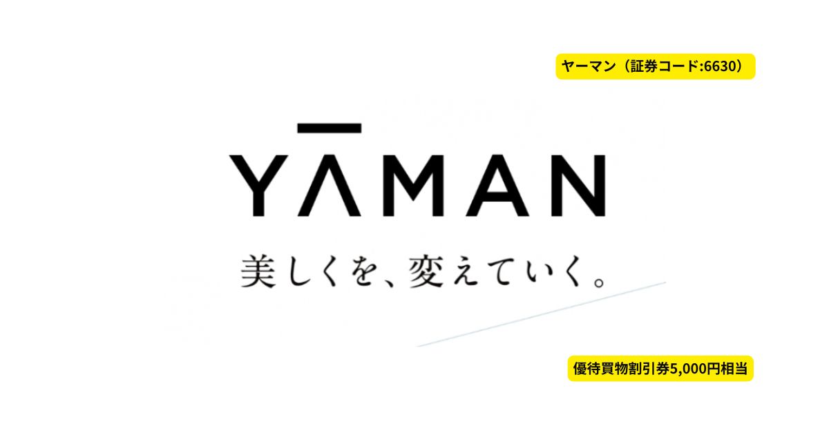 優待内容 「ヤーマンオンラインストア」で使える優待買物割引券5,000円相当  保有株数、保有期間に応じて増加