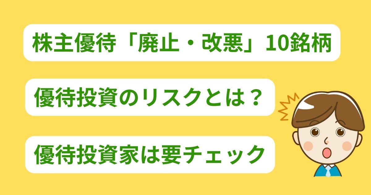 今回は、2025年~2026年に株主優待が廃止・改悪された10銘柄を紹介しました。